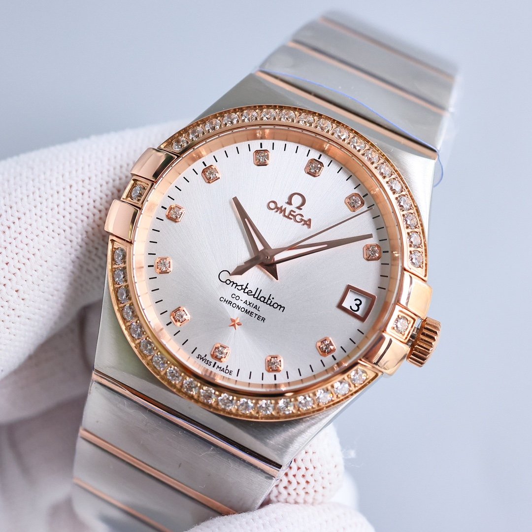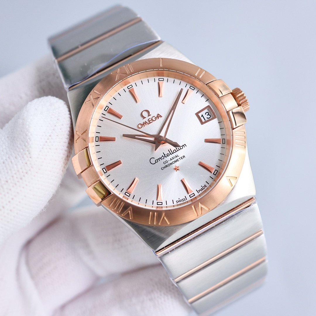 The 38mm Omega Constellation series men’s watch of the fourth generation features the following: 1⃣️ Case: The classic half-moon cutouts on both sides of the case and the “claws” embody the timeless and charming design of the Constellation series. 2⃣️ Bezel: Roman numerals are engraved on the bezel. 3⃣️ Dial: The sunray dial is paired with multi-faceted polished and brushed hour markers. 4⃣️ Hands: The multi-faceted polished and brushed hands offer a multi-angle aesthetic. 5⃣️ Movement: The movement is a replica of the 8500 with a black windmill rotor, and the deck jewels are slightly raised and full, providing the movement with more stable performance. This watch is suitable for formal occasions and can help you handle work and social situations with ease, and it pairs well with both formal and casual wear, highlighting your masculine charm!