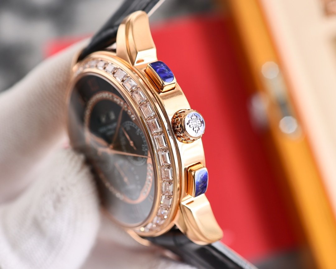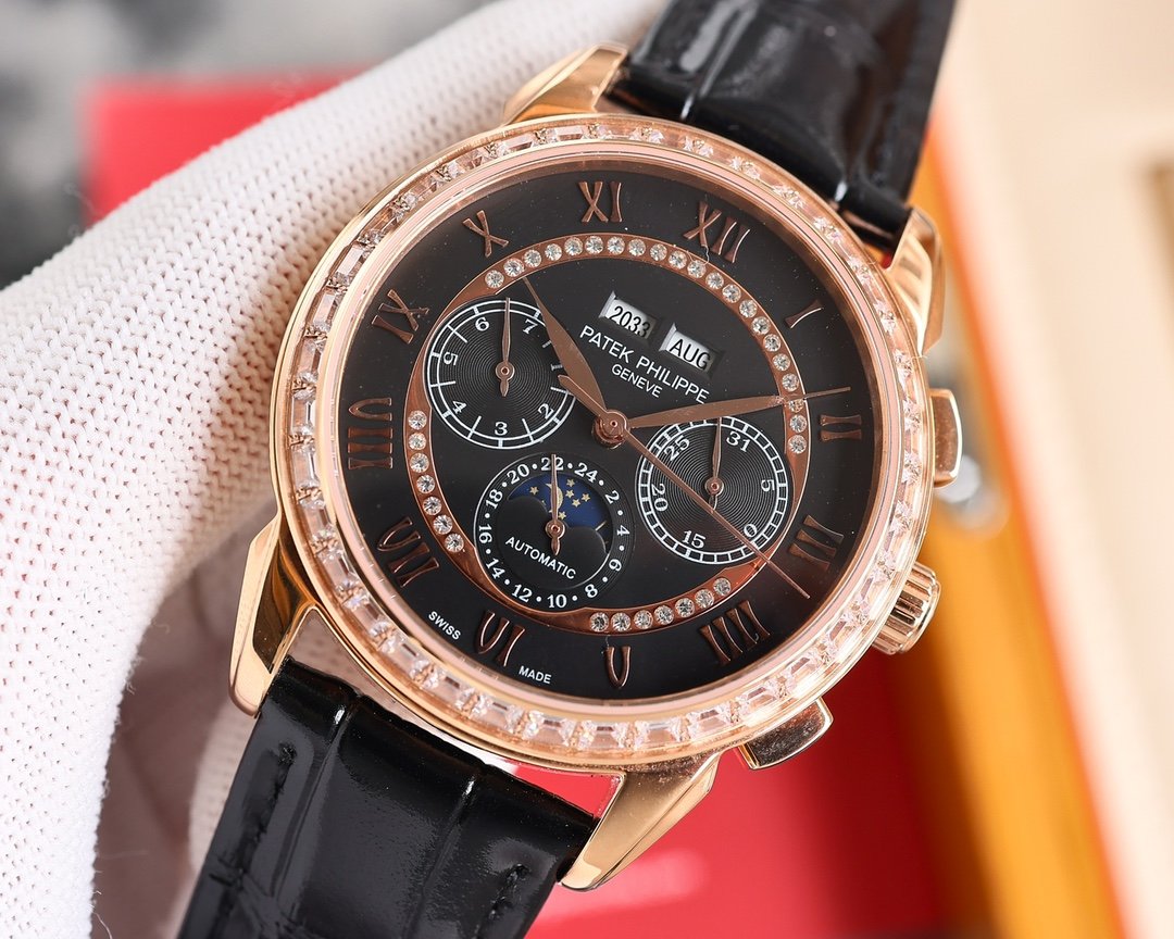 “V4 upgraded version” button upgrade original replica mold, Patek Philippe Super Complication Chronograph Series! Heartfelt work, in terms of details: 1: The team spent more than two years carefully designing, not counting costs, being bold and pioneering, striving for perfection, overcoming numerous difficulties, and breaking through multiple technical bottlenecks. The movement model is the upgraded version of CH 29-535, with an exquisite skeletonized rotor, stable quality! 2: The size is 41mm, and the thickness is 11mm! 3: The case is made of 316L full steel with nano platinum plating technology, with South African diamonds decorating the bezel, highlighting its noble and grand appearance. The strap is made of Italian top-grain cowhide, making it even more elegant and upscale! You deserve to own it! ⚠️ Please recognize the exclusive quality.